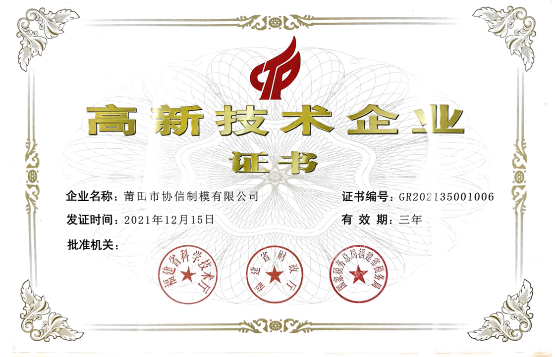 公司信譽(yù)度良好,2014年開始至今,連續(xù)多年獲得“納稅大戶”稱號。公司的管理和技術(shù)力量雄厚,榮獲了“福建省科技小巨人企業(yè)”、“科技型中小企業(yè)”、“市級企業(yè)技術(shù)中心”等稱號。2021年獲得“國家高新技術(shù)企業(yè)”認(rèn)定,通過GB/T29490-2013《知識產(chǎn)權(quán)管理體系認(rèn)證》。